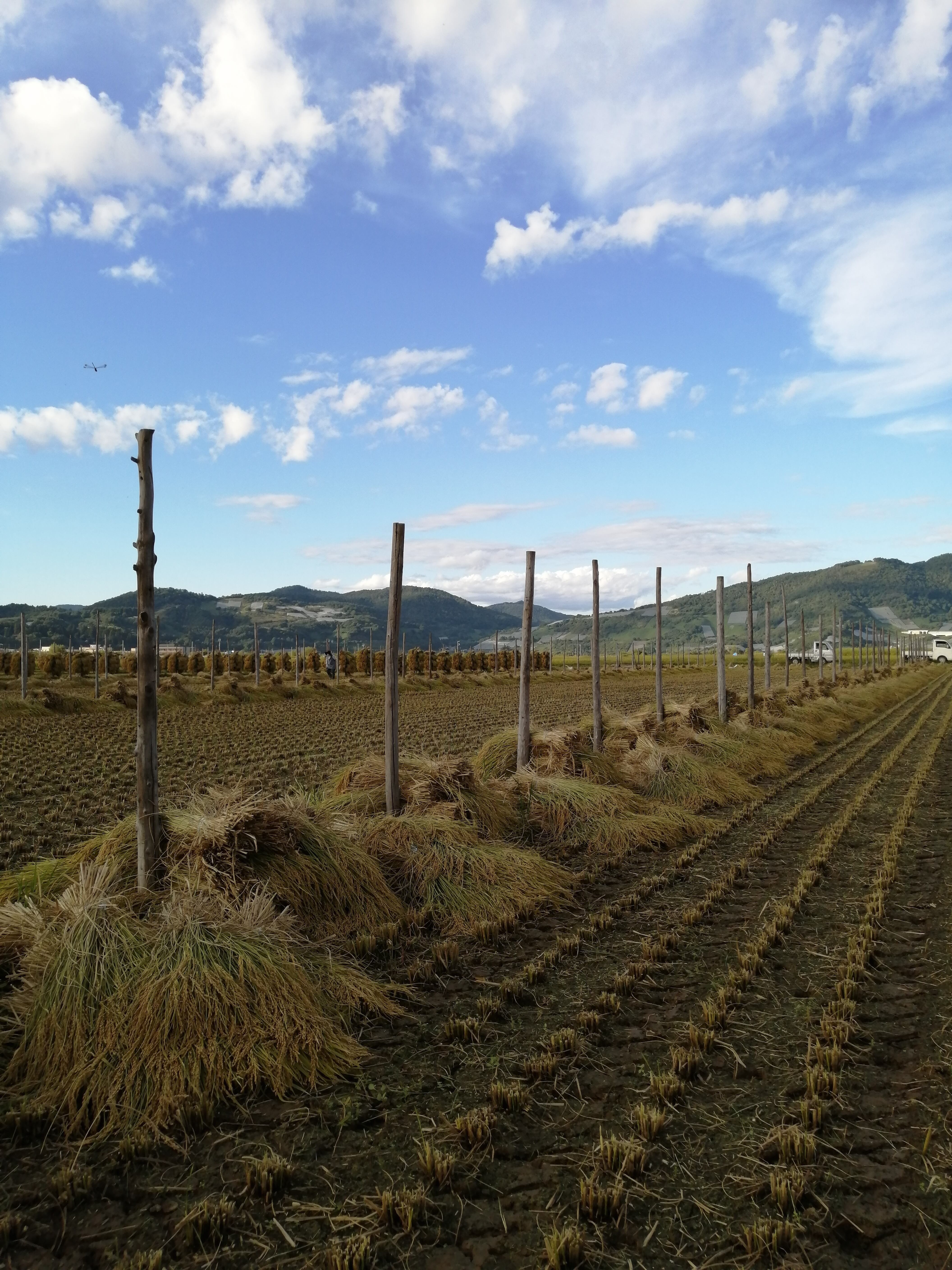 この方法で乾燥させたお米は、大変風味が良く、美味しくなります。人間の手作業と自然の力を借りて行う、美味しいお米作りには欠かせない大切な工程です。