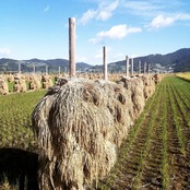 おがわ藁農園ではくいがけという方法で稲を乾燥させます。